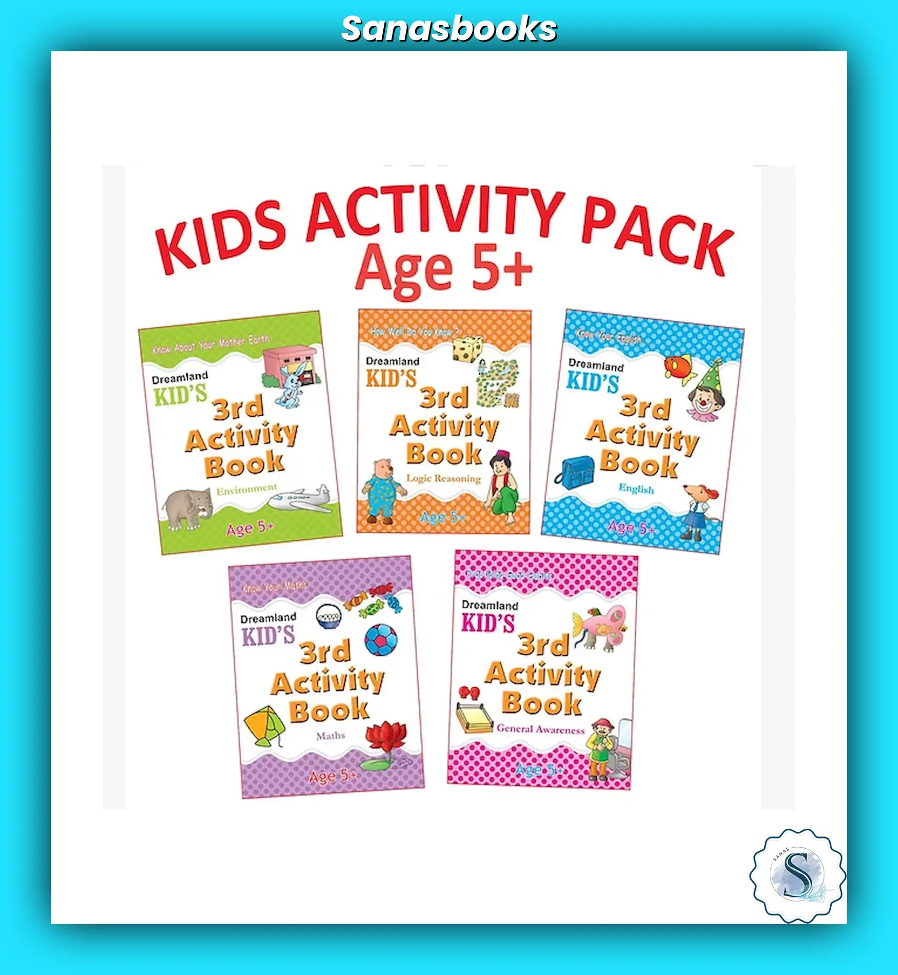 The Kid’s 3rd Activity Book set for age 5+ includes 5 engaging books that cover Environment, Maths, English, Logic, and General Awareness. Each page is packed with colourful exercises that promote early academics while making learning enjoyable. A great pick for building confidence and routine practice at home.