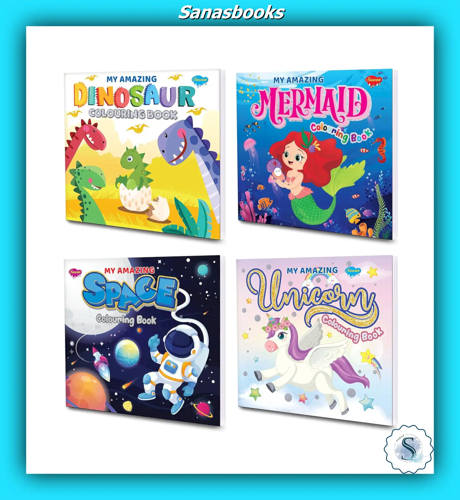 Introducing My Amazing Colouring Books of Dinosaur, Space, Mermaid & Unicorn This beautiful series consists of enchanting titles like Dinosaur, Mermaid, Space and Unicorn theme colouring books. This amazing colouring book series is full of a variety of fun and vibrant images and is ideal for the little ones who love to colour