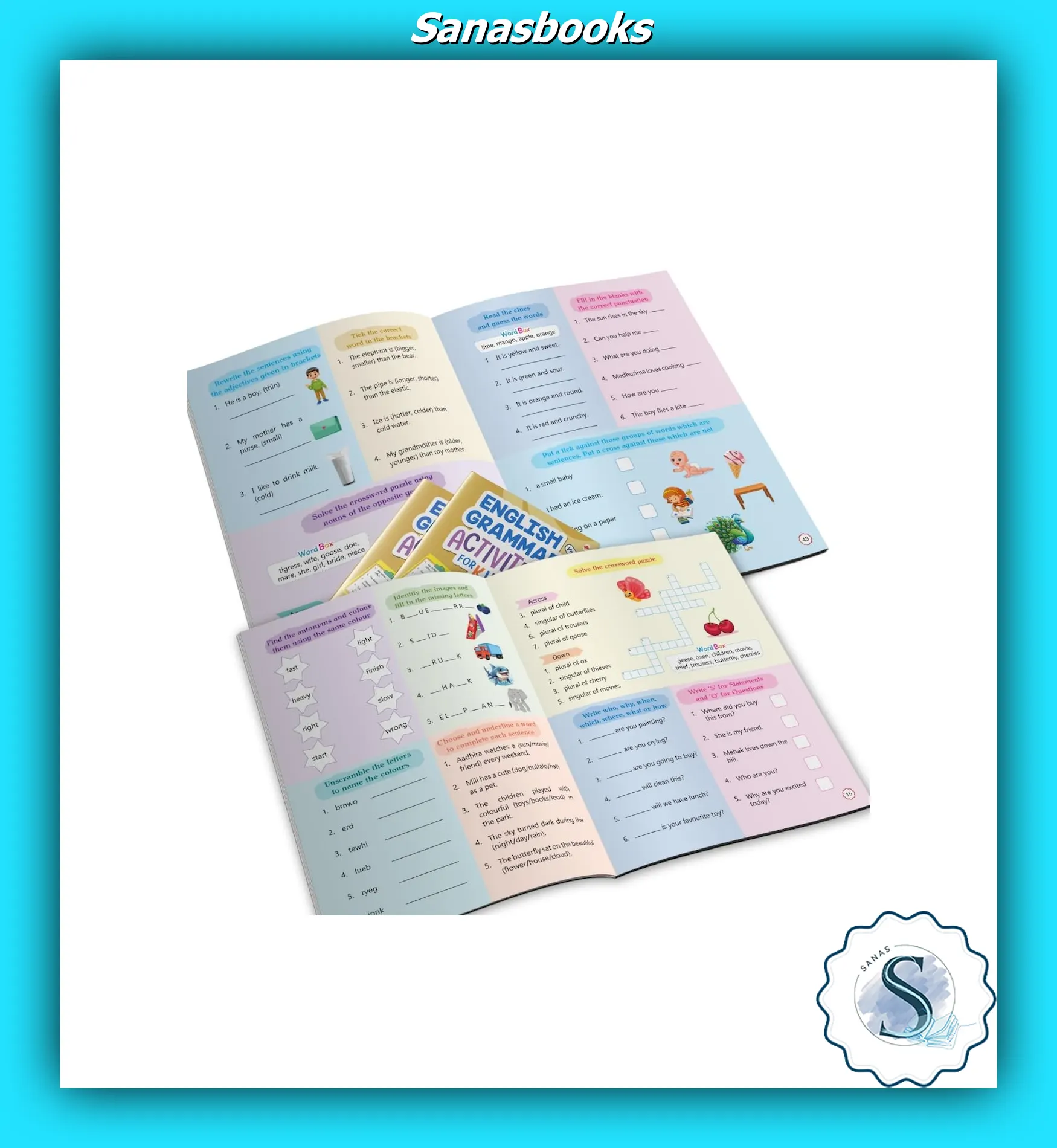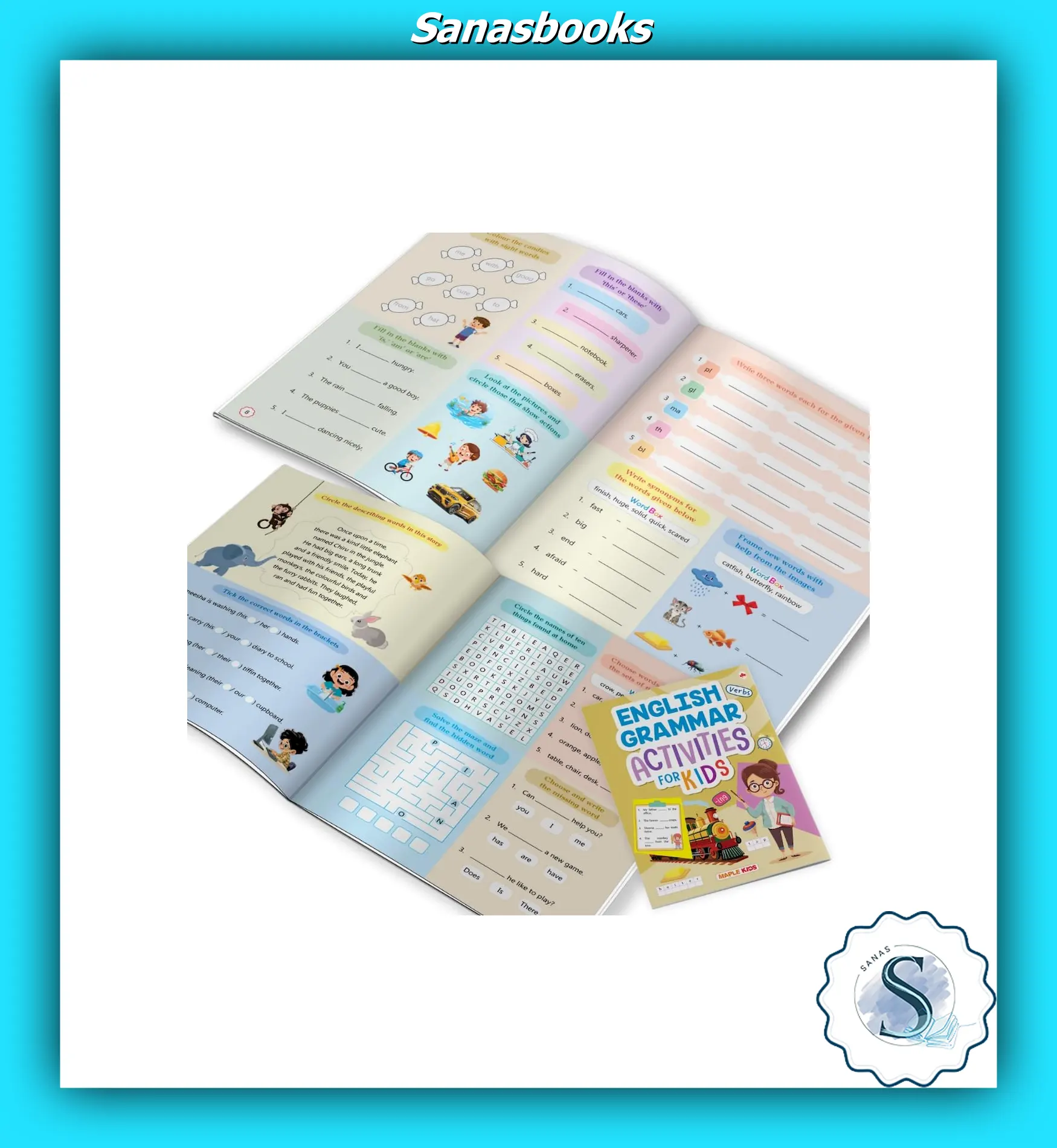 English Grammar Activity Book for Kids is a colourful and engaging activity workbook by Maple Press, designed to help young learners build strong grammar foundations through fun practice. This interactive book includes exercises on verbs, sentence formation, word building, spelling, fill-in-the-blanks, matching, puzzles, and simple writing tasks. With lively illustrations and playful themes, English Grammar Activities for Kids keeps children motivated while improving vocabulary, reading, and writing skills. Perfect for home learning, classroom use, and enrichment practice, it supports early language development and boosts confidence in English. Ideal for preschool and primary students in Singapore, this book encourages independent learning through enjoyable activities. Available at Sana Stationaries Singapore, with fast and reliable local deliveries for parents, teachers, and schools.