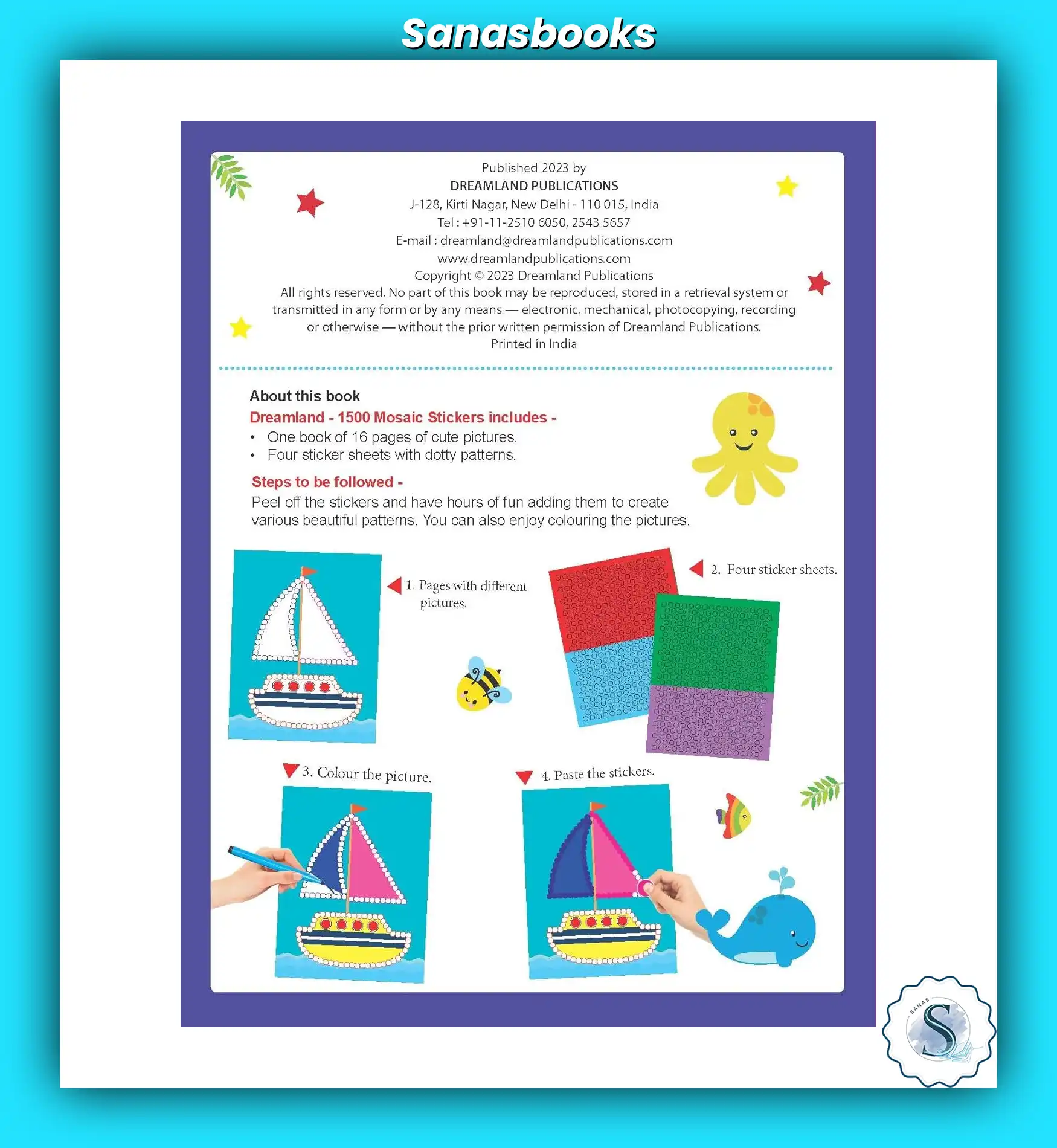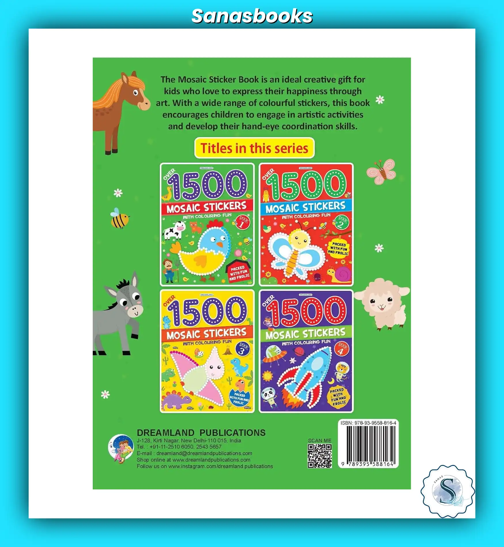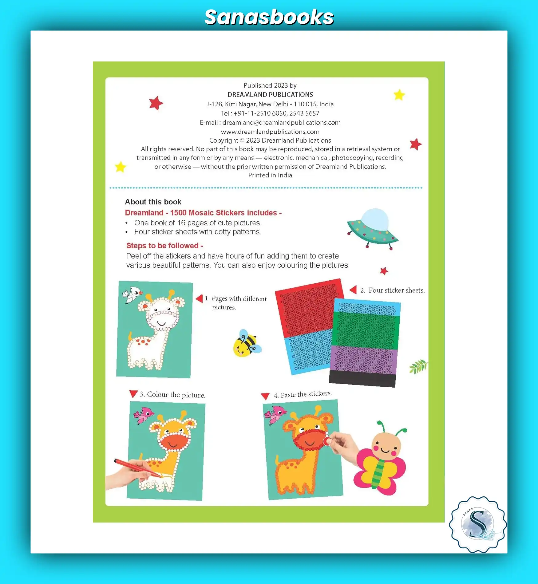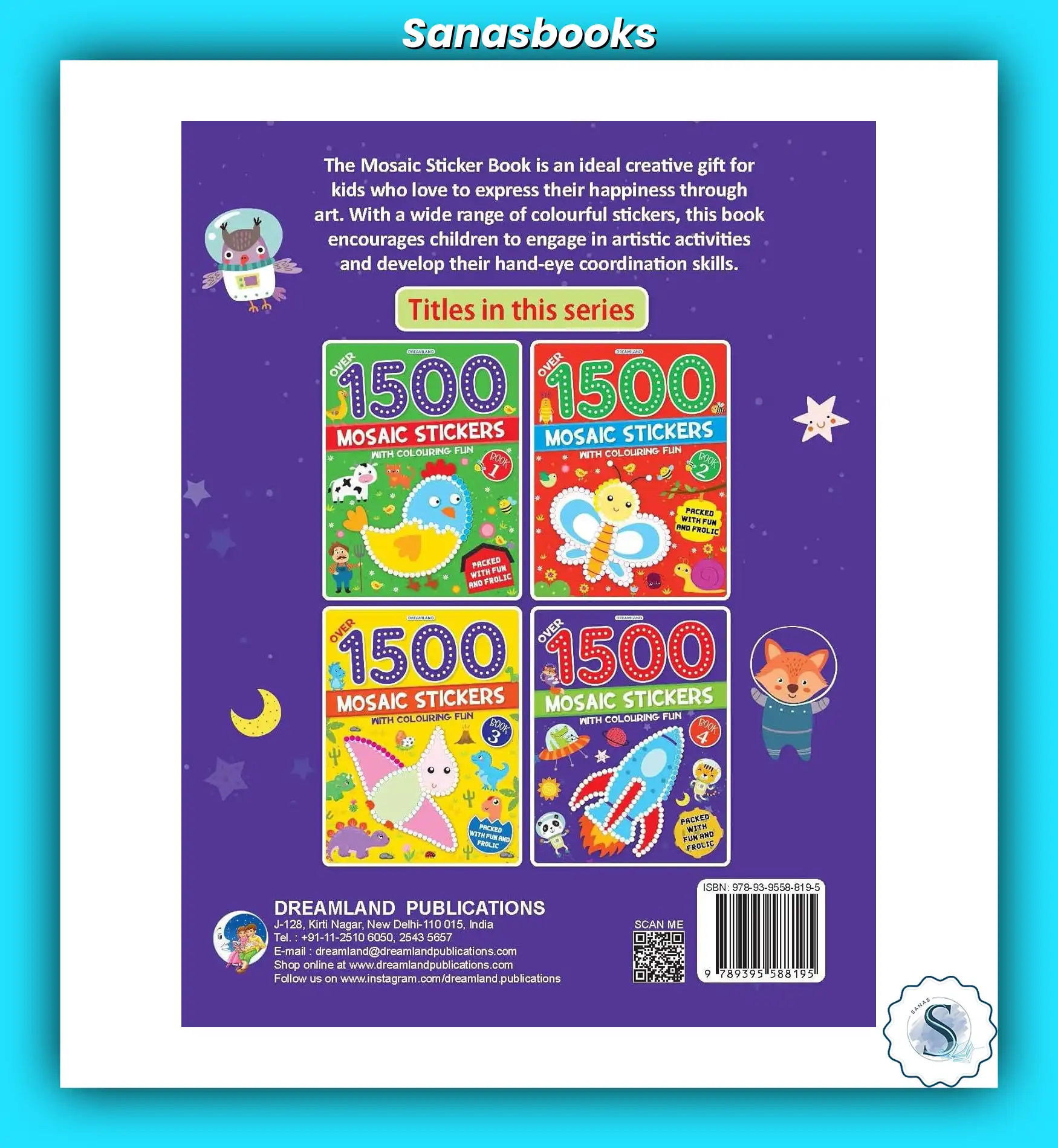 Dreamland’s 1500+ Mosaic Stickers with Colouring (Set of 4) is a perfect activity set for children who enjoy sticking and colouring. With colourful mosaic stickers and themed pages like animals, space, and more, this set improves creativity, pattern recognition, and hand control. A fun-filled sticker book set loved by kids and parents in Singapore.